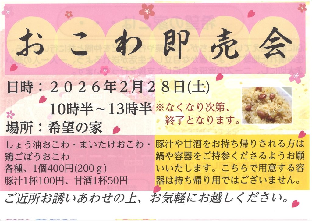 2/28(土) 希望の家おこわ即売会のご案内